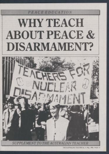 The Teachers for Nuclear Disarmament was an offshoot of the People from Nuclear Disarmament formed by activists from the Teachers Federation.