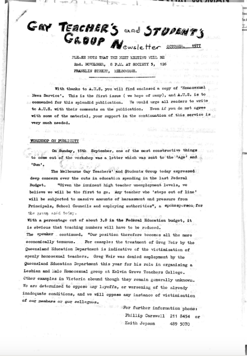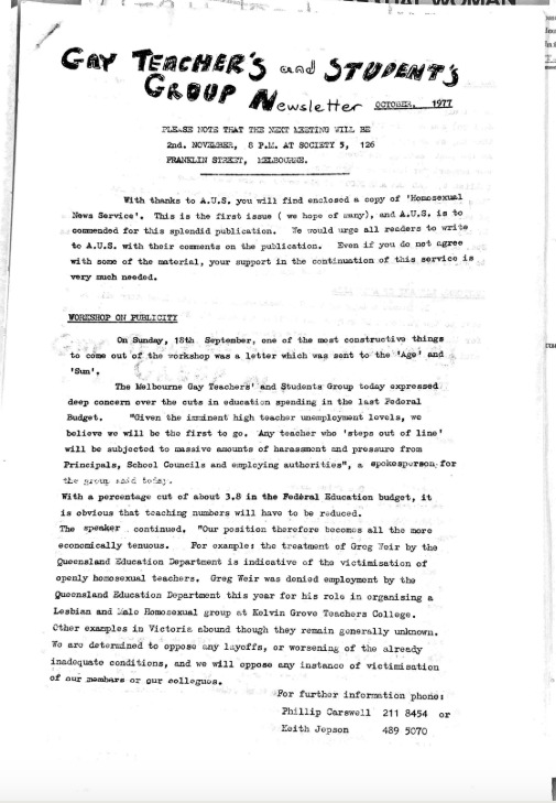 - Newsletter: Gay Teachers and Student's Group Newsletter
